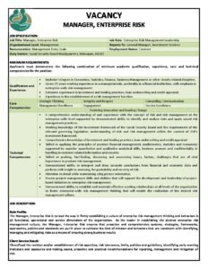 VACANCY – Manager Enterprise Risk