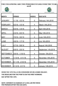 Contribution Schedule 2018